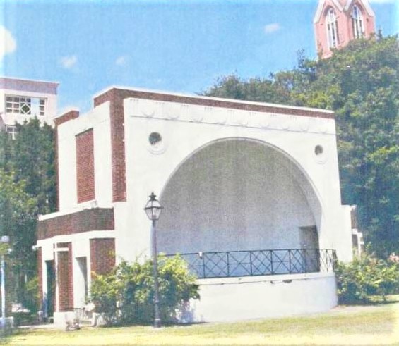 Completed in 1942, the band shell was designed by Augustus Constantine. It was demolished in 2000.