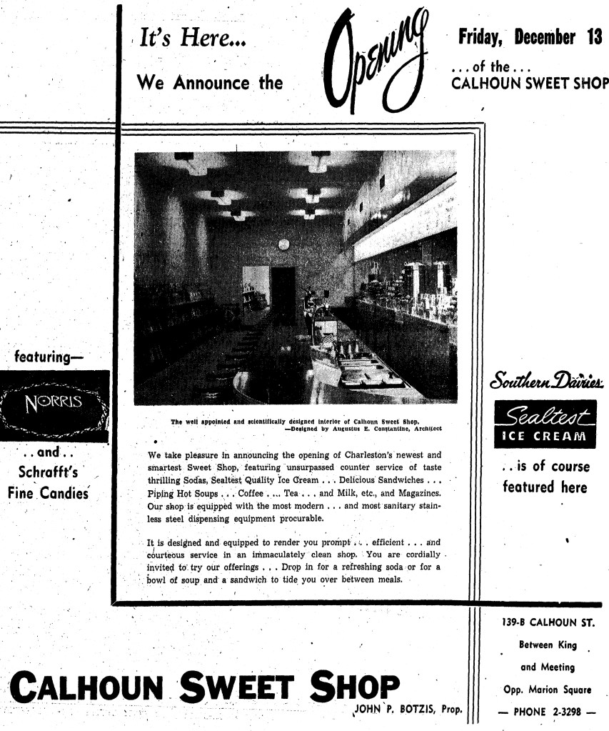 Completed in 1946 by Augustus Constantine for his brother-in-law, who ran a sweet shop on the first floor. Constantine maintained his offices on the second floor until the mid-1970s.